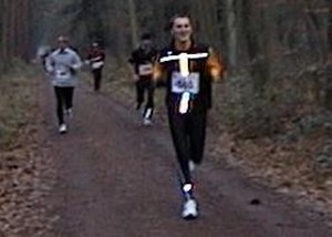 Ich bei Kilometer 13, toll wie die Streifen leuchten :-)