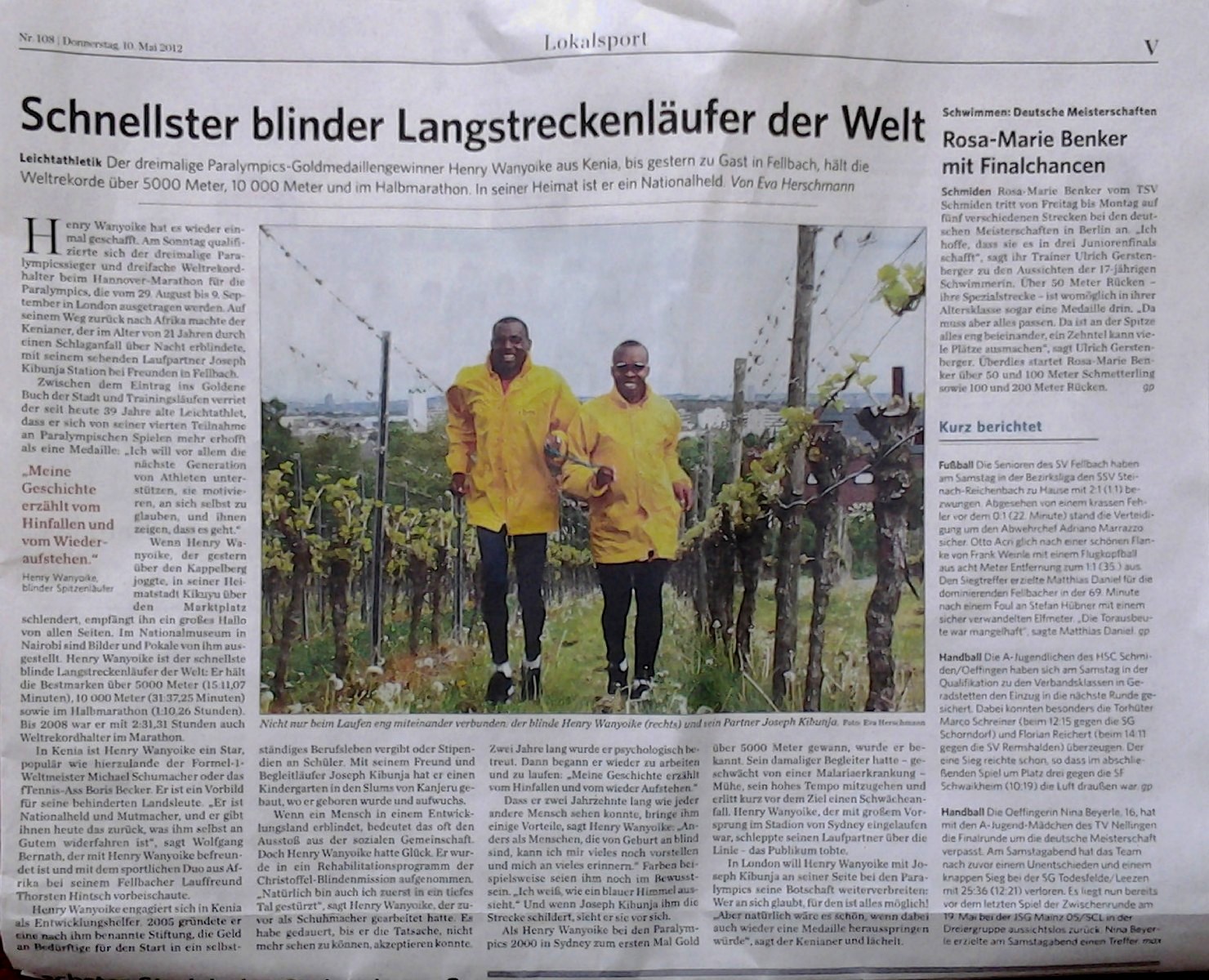 Henry Wanyoike und sein Guide Joseph Kibunja in Fellbach