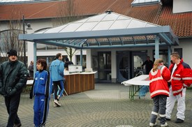 und vor der Halle ist es noch ruhig
